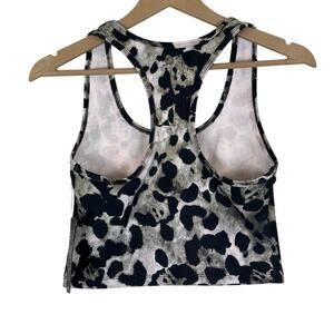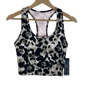 NWT EVCR Bra Tank Womens S Black Tan Leopard Print Cropped Racerback Athleisure