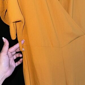NWT- EVEN & ODD- front wrap mustard yellow short sleeve jumpsuit size Large