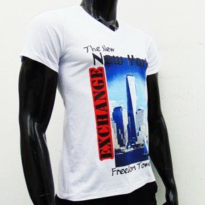 NWT EXCHANGE NEW YORK MEN'S WHITE V-NECK SHORT SLEEVE T-SHIRT SIZE S M L XL