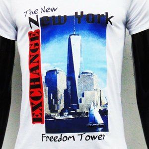 THE NEW YORK FREEDOM TOWER EXCHANGE MEN'S WHITE V-NECK SHORT SLEEVE T-SHIRT