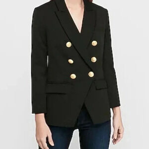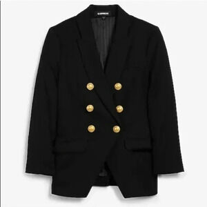 NWT EXPRESS Black Double Breasted Editor Blazer w/ Gold Buttons