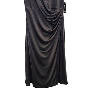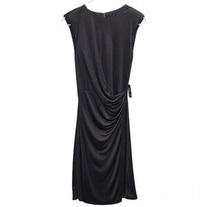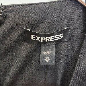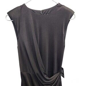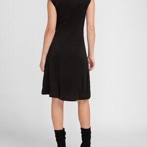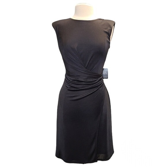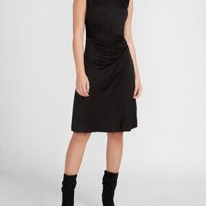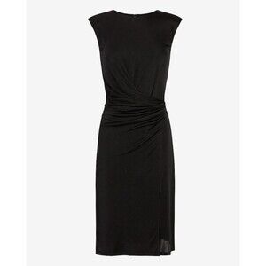 NWT EXPRESS Black Satin Cap Padded Shoulder Sleeve Ruched Dress XS