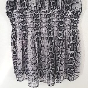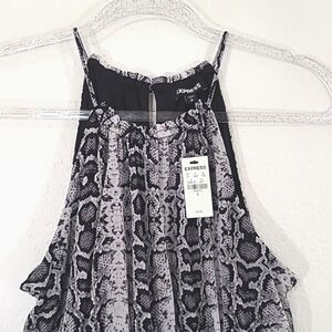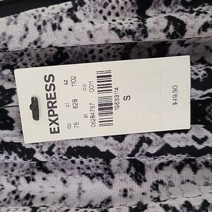 *NWT* EXPRESS Black/Gray Animal/Geometric Print Halter Top, size Small. Keyhole opening with button closure in the back. Elastic stretchy waist. Lined.