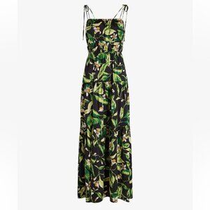 NWT EXPRESS Floral Square Neck Sleeveless Tie Shoulder Ruched Tiered Maxi Dress