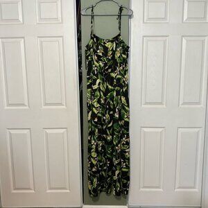 🆕 NWT EXPRESS Floral Square Neck Sleeveless Tie Shoulder Ruched Tiered Maxi Dress, Women’s Size XL
