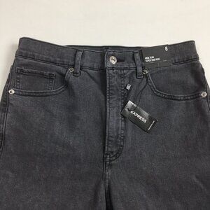 NWT EXPRESS Gray Mom Jean Super High Waist Step Fray Hem Distressed Jeans