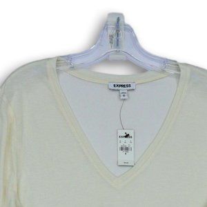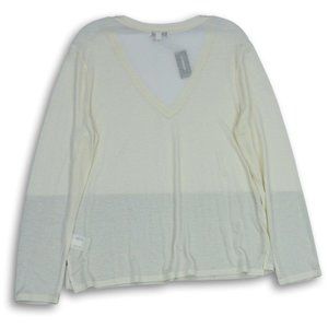 NWT EXPRESS IVORY LONG SLEEVE V-NECK SIDE SLIT PULL-OVER SHIRT MEDIUM