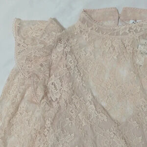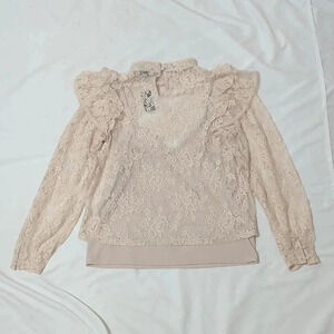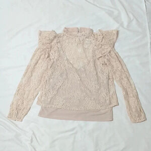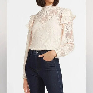 NWT EXPRESS Lace Ruffle Mock Neck Top, Cream Size S/P