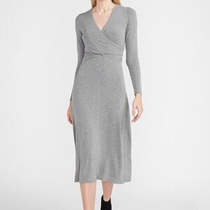 NWT EXPRESS Long Sleeve Cross Front Knit Comfortable Casual Night Midi Dress S