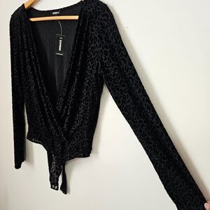 NWT EXPRESS SEMI SHEER VELVET EMBOSSED PATTERN DEEP V SURPLICE NECK BODYSUIT M