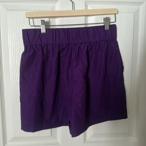 Chic and versatile shorts. Ideal for workouts or casual wear. Elastic waistband for comfort. Material is like a workout polyester material. Jewel tone purple with pockets. Wide waistband. Can be worn for for the pool or dressed up. Brand new with tags. Smoke free home.