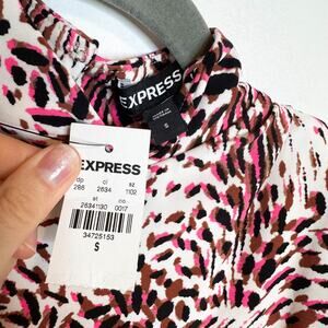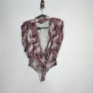 NWT EXPRESS mock neck bodysuit open back shoulder pads animal print 3157