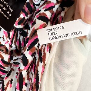 Color: white with pink, black, and brown