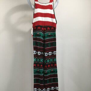 NWT EYESHADOW Christmas SCARY & BRIGHT Sequins Skull Pattern Knit Overalls