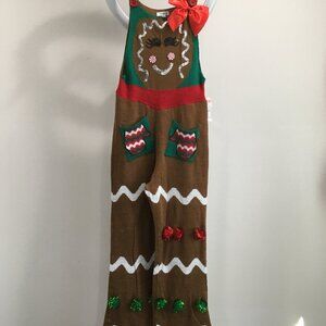 NWT EYESHADOW Gingerbread Woman Cookie Peppermint Mitten Christmas Knit Overalls