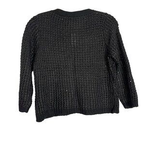 NWT EYN Womens Black Crochet Cardigan Sweater metallic size medium hidden snaps