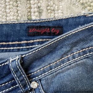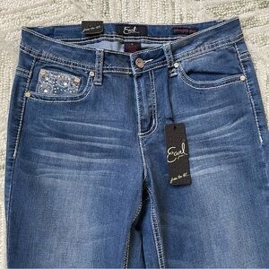 NWT Earl Straight Leg Medium Wash Embellished Pockets Zip Button Jeans Pants