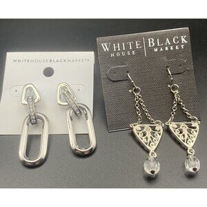 NWT Earrings Lot 2 Pairs White House Black Market Silver Tone Dangle Retail $54