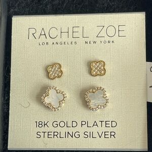 NWT Earrings RachelZoe Gold Sterling Silver Mother of Pearl Clover Stud Earrings