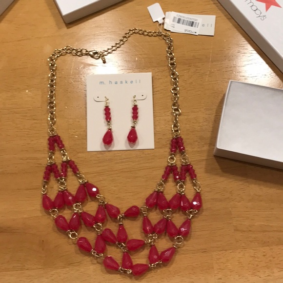 Beautiful pink collar statement necklace and earrings set. Also comes with both gift boxes.
