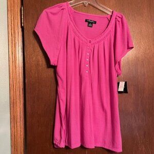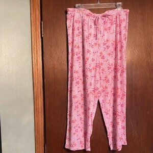 NWT Earth Angels Pajama top and bottom size XL. Pink top and pink and orange bottoms with elastic waist. 100% polyester. Made in China.