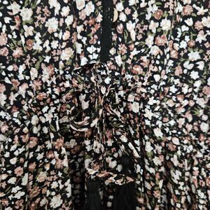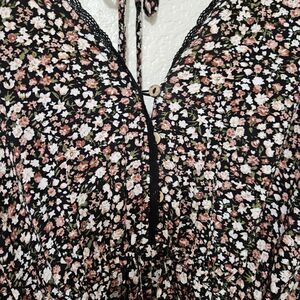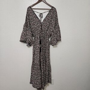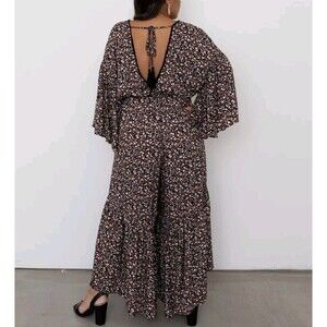 NWT Easel Black Floral Jumpsuit Flowy Bell Ruffle Sleeve V Neck Small