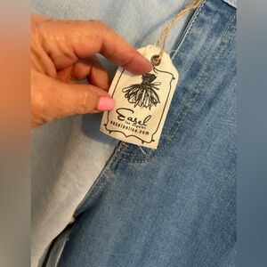 NWT Easel Light Wash Color Block Flared Zip Fly Bell Bottom Frayed Jeans