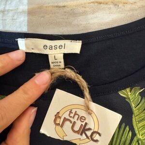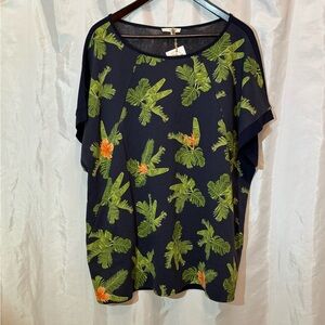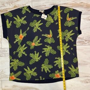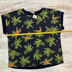 NWT Easel Navy Tropical Palm Leaf Print Blouse Size Large
