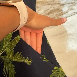 • Color: Navy with green palm leaf & orange floral print