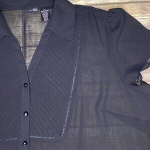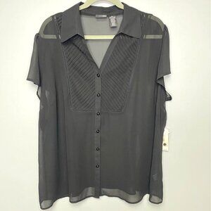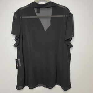 NWT East 5th Plus Size Black Flutter Sleeve V-Neck Button-up Blouse size 2X