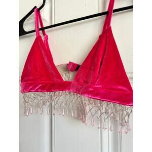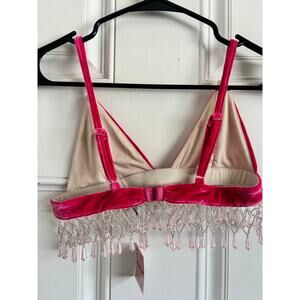 NWT Eastnwest Label hot pink fringe beaded velvet bra size large