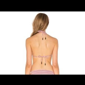 Triangle style bikini top in Canyon rose Feather charm embellished ties Removable pads