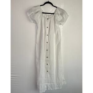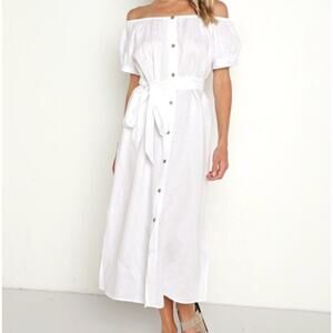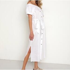 NWT Eberjey Linen Solid White Harper Midi Dress Off Shoulder Button Down Small