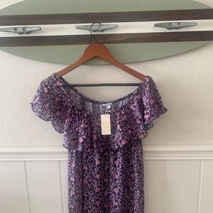 New with tags Eberjey Moon Flowers Midi is light-as-air 100% viscose, feminine, elasticized off the shoulder with a ruffle overlay.