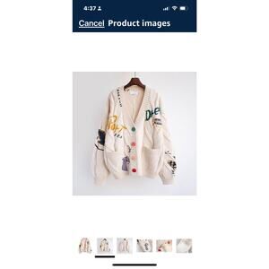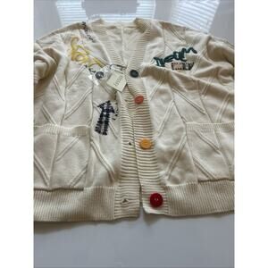 NWT Ebossy Cardigan Sweater XL Ivory Dream Knit Embroidered Patchwork New