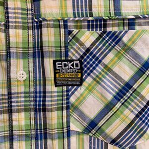 NWT Ecko Unltd Shirt Adult Large Green Blue Button Up Streetwear Casual Mens