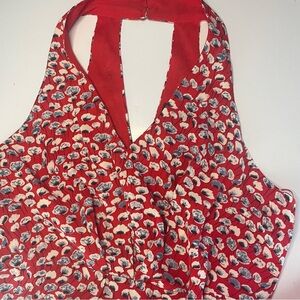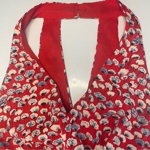Women’s Large Red Floral Dress with zippered keyhole back and buttoned neck