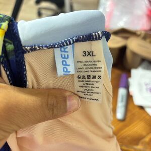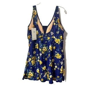 NWT Ecupper Womens Blue Lined Tie Front V-Neck Floral One Piece Swim Dress 3XL