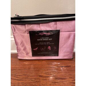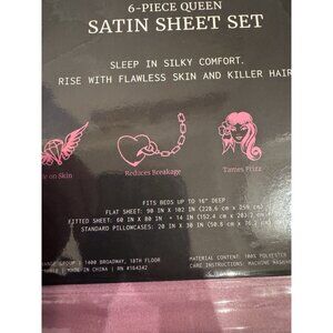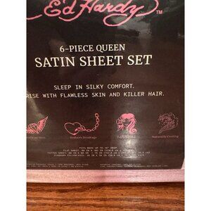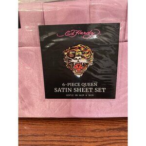 NWT Ed Hardy 6-Piece Pink QUEEN Sheet Set Satin Silk