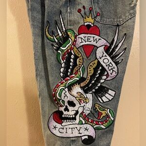 NWT Ed Hardy Embroidered NYC Skull jeans sz 32