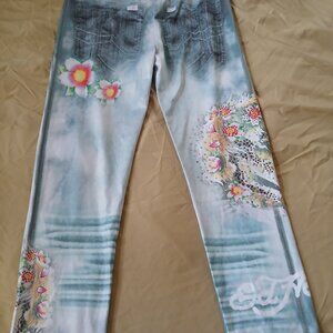 Ed Hardy Pants Girls Floral Straight Leg Leggings Size Small.Brand New