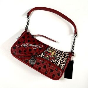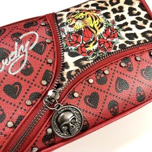 NWT Ed Hardy Red Leopard Tiger Skull Heart Shoulder Crossbody Bag Tattoo Skull