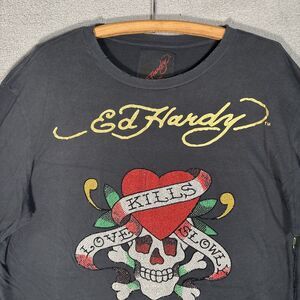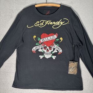 NWT Ed Hardy T Shirt Men XL Black Love Kills Slowly Grunge Distressed Skulls Y2K