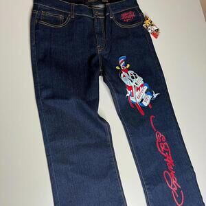 NWT Ed Hardy Women’s Jeans Size (W32 L33) Dark Wash Embroidered Tattoo Graphic