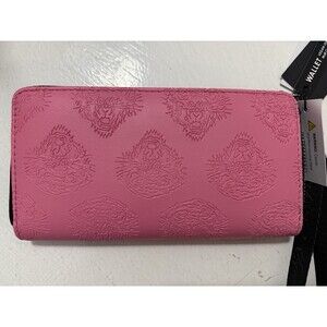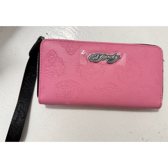 NWT Ed Hardy Zip Around Wristlet - Embossed Screaming Tiger On Pink