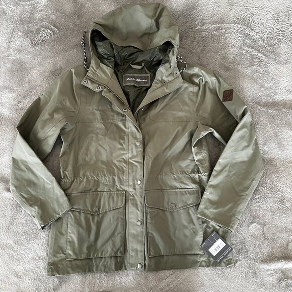 NWT Eddie Bauer Charly Jacket Green Women's size LARGE Rain Anorak