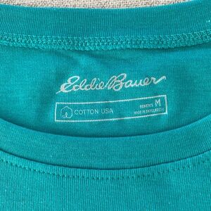 Eddie Bauer women's regular "Favorite" long sleeved crew neck T shirt in size M. Emerald color is a very slightly heathered teal green. Very soft.
