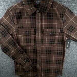 NWT Eddie Bauer Fleece Shirt Men Long Sleeve Button Up Shirt Plaid Brown Small