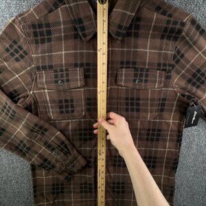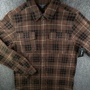 NWT Eddie Bauer Fleece Shirt Men Medium Long Sleeve Button Up Shirt Plaid Brown