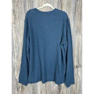 NWT Eddie Bauer Long Sleeve Thermal Crew Neck Waffle Henley Shirt Blue Size XLT.